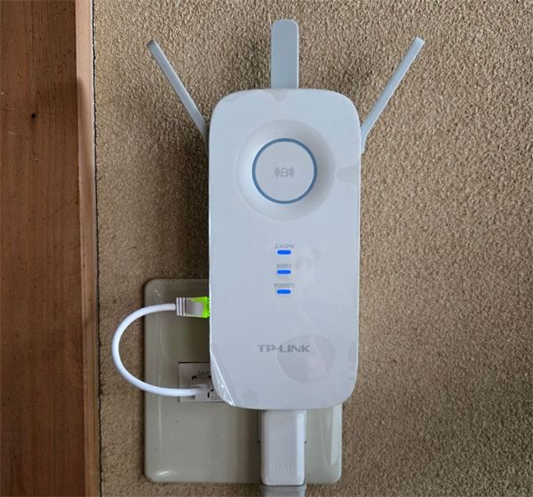 有線でWi-Fiルータのある二階とつなぎ、このRE450からカメラC460 はわずか5m位の位置になりましたので、今までのような「つながらない」状態が解消されました。