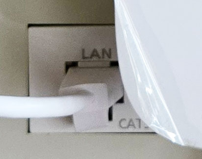 LANジャックからRE450は5cmほどしか離れていません。15cmのイーサネットケーブルで、すっきりと繋ぎました。
