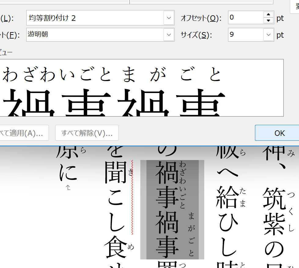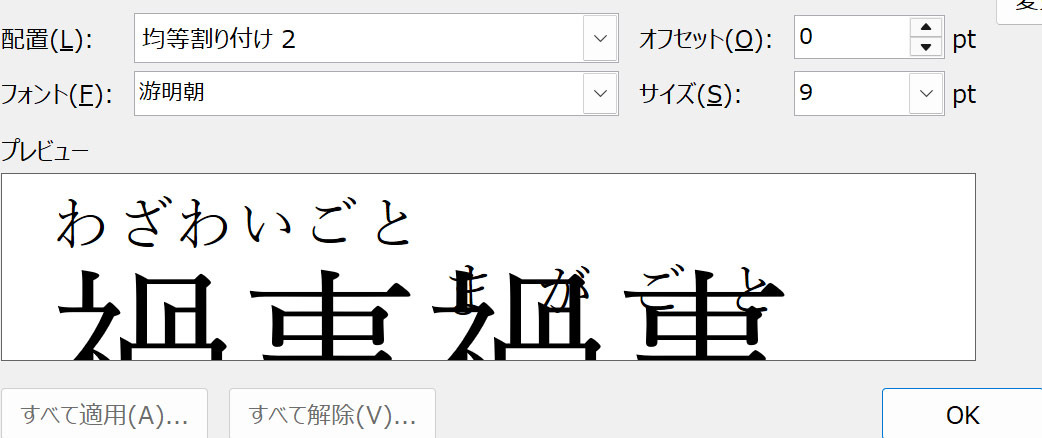 ルビの位置(オフセット)を変更しようとしました。