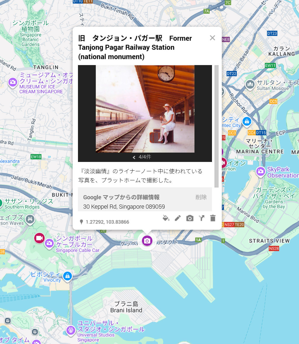 シンガポールにあった、旧タンジョン・パガー駅のプラットフォームだと分かりました。ということで、マッピング。(新タンジョン・パガーは別の位置にあります。)