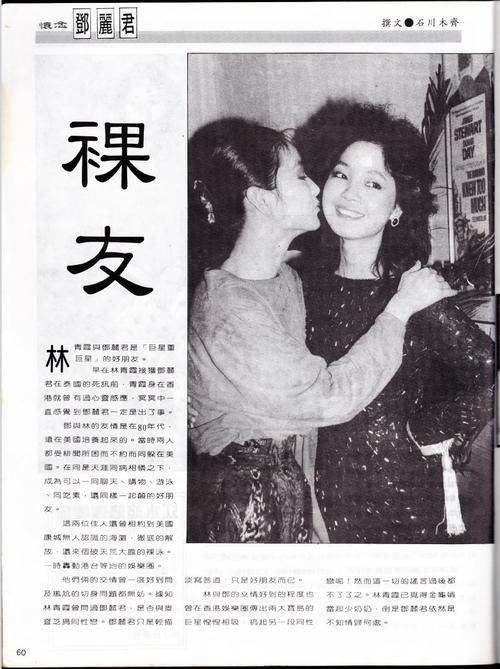 即與林的友情是在80年代。 還在美國培養起來的。當時兩人都受細聞所困而不約而同躲在美國,在同是天涯同病相憐之下。 成為可以一同聊天、購物、游泳、 、同吃素,這同樣一把品的好朋な。